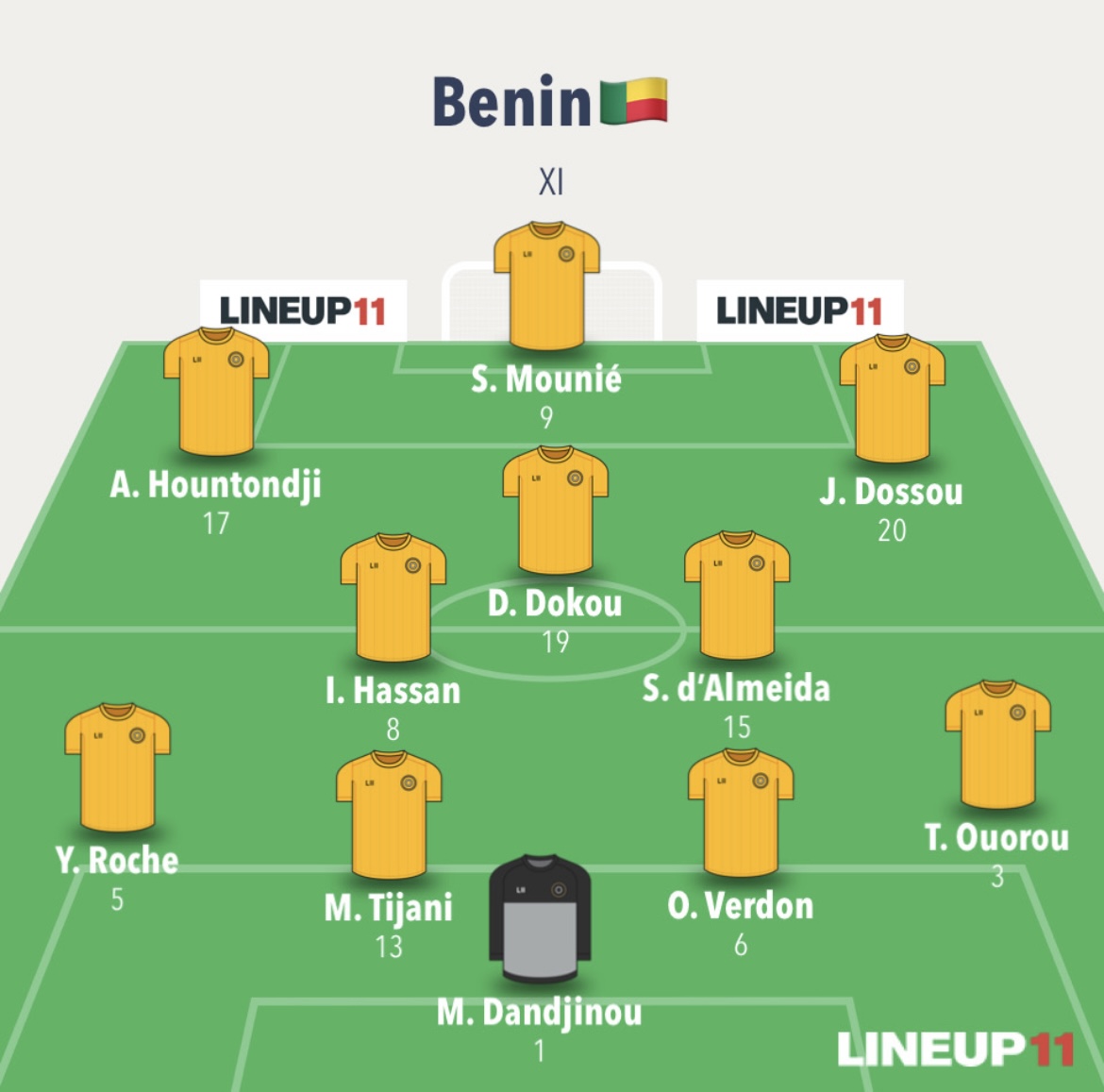 Le Bénin débutera son match de la 9e journée des qualifications du Mondial 2026 face au Rwanda avec avec une équipe remaniée. Tamimou Ouorou revient au poste d’arrière droit , Dodo Dokou retrouve sa place de titulaire au cœur du jeu enfin Jodel Dossou est préféré pour débuter sur le côté droit suite au ménagement de D’Aiyegun Tosin. Coup d’envoi à 17h au stade Amahoro de Kigali.