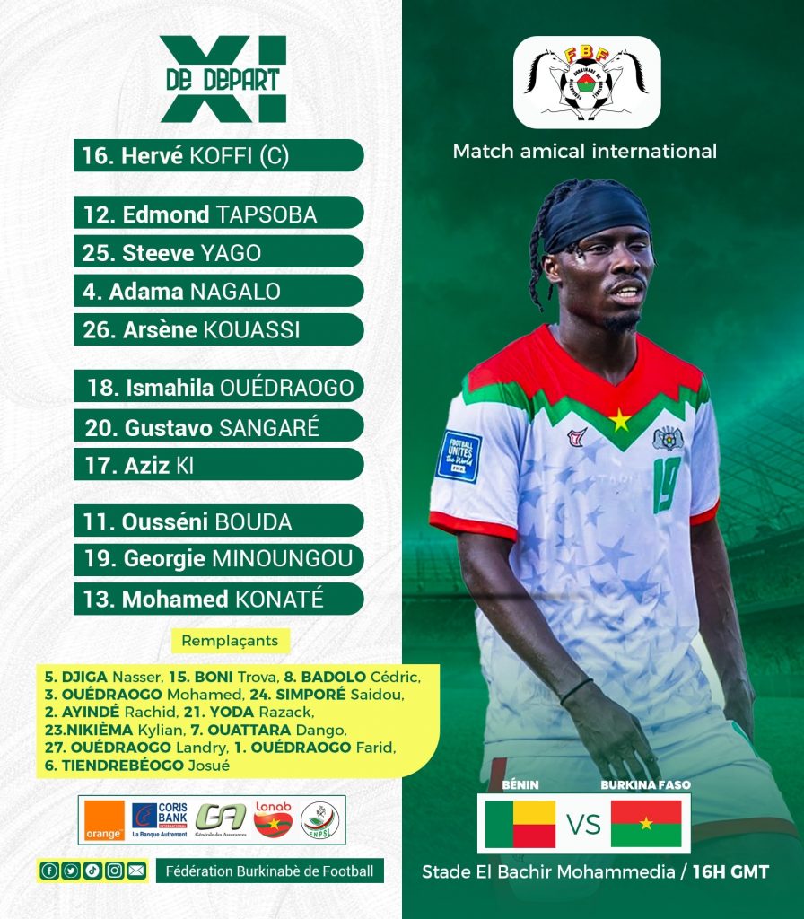 La composition choisie par le sélectionneur des Etalons, Brama Traoré pour le match amical contre le Bénin ce mardi à 17h au stade Mohamed à Rabat.