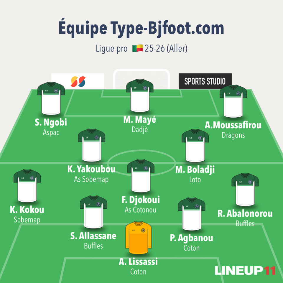 Mariano Tchinonvi (Loto) le dernier rempart n’a perdu sa place et son importance dans les buts avec huit « clean sheet ». Samadou Meatchi (Aspac), régulier chez les portuaires, l’arrière droit s’est fait remarquer avec les longues touches et sa présence sur son flanc. Christophe Dovi (Dynamo Abomey), l’arrière central a profité pour se faire remarquer par sa vista et sa force athlétique. Aldo Loko (Sobemap), après un début saison manqué pour blessure, le capitaine et meneur des manutentionnaires est revenu en force avec 2 buts et une passe décisive. Junior Olougbadé (Asvo), il s’est révélé comme la lumière de son équipe en meneur de jeu se montrant agile, mobile et décisif avec 4 buts marqués.Ousmane Maharemi (Buffles), l’ailier utilisé comme joker sait comme retourner un match avec son sens du dribble et de la percussion facile pour ce joueur. Paterne Kpotonsi (As Cotonou) il a tapé dans l’oeil dans son style atypique, puissant et bon joueur de ballon aussi malin dans les déplacements il a planté trois buts précieux